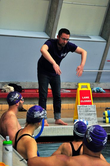 'Coach Stewart fosters a friendly, encouraging environment in his swim groups where people have fun and celebrate each other's progress. He has you swim hard, but he’s so nice about it that you don’t realize how hard you've worked until the session is over and you realize what you’ve accomplished. I leave training sessions feeling energized and can’t wait for the next one. He is generous with his time and his knowledge, and he truly cares about helping people achieve their goals and enjoy the water. Coach Stewart has transformed my swimming.'